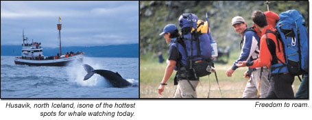 trips to the nearby glacial cap of Vatnajokull. Whale watching cruises