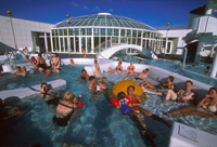 Swimming Thanks to an abundance of hot water, swimming is probably the most popular activity in Iceland. Almost every town and village has a swimming pool, usually outdoors, which is filled with hot water to a comfortable temperature and kept open year round. Many people enjoy swimming lengths in the pools, but most go to sit in the circular “hot pots” and have a good chat with their friends. The hot pots have temperatures ranging from 97 – 111°F (36 – 44°C). Many swimming complexes also have saunas, steam rooms and solariums. They are open daily, often until 10.30pm in summer, and the admission fee is very low. Changing rooms and lockers with keys are provided, and everything is very clean. We highly recommend you visit at least one swimming pool on your trip to Iceland.